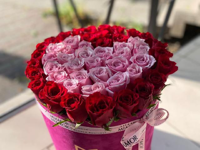 51 роза и сердце из роз внутри