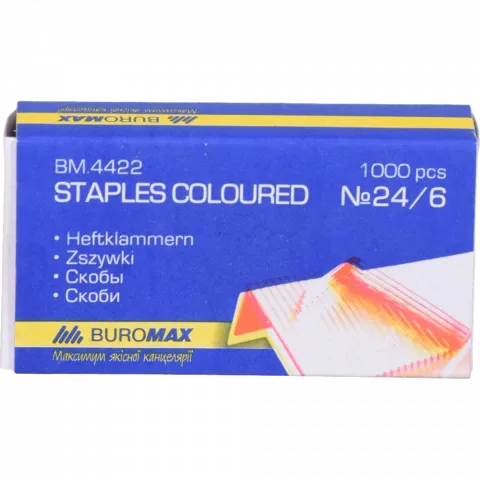 Скоби BuroMax 24/6 1000 шт. кольор. BM.4422